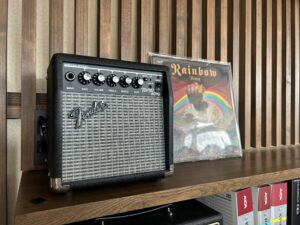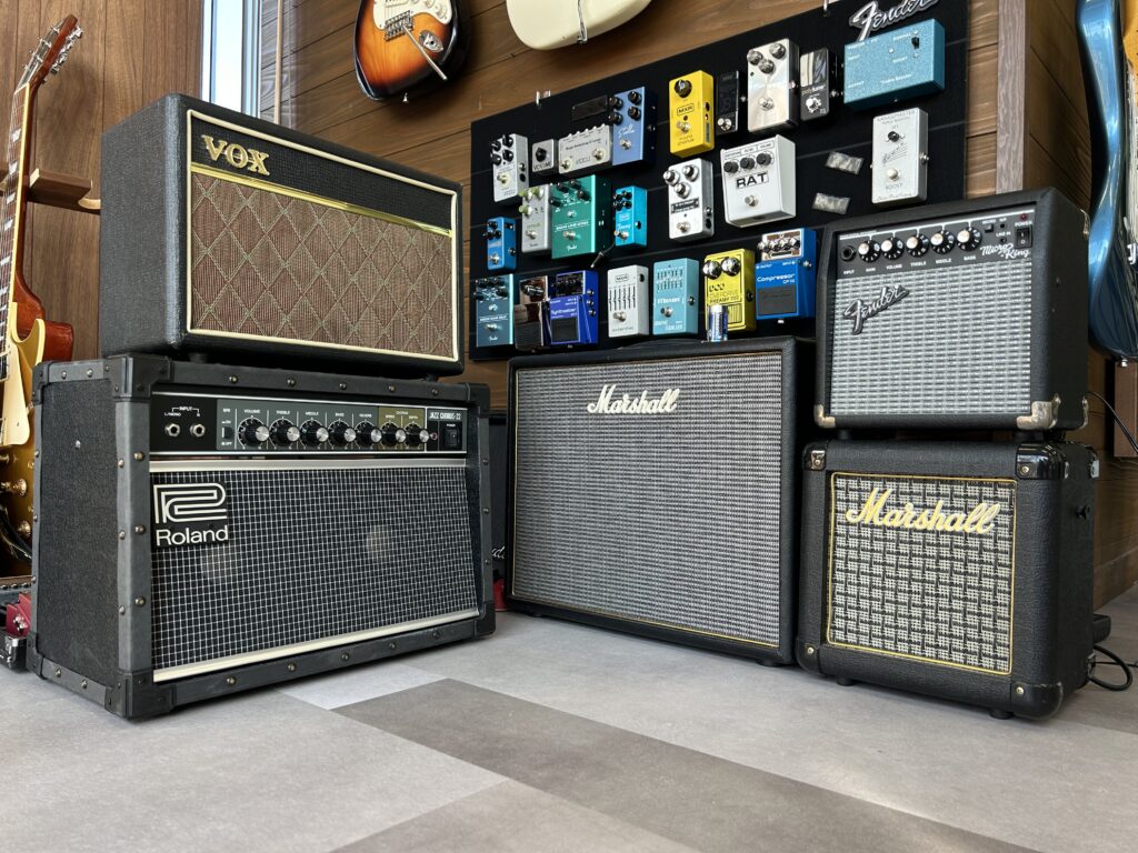 ROLANDはJC-22。なぜか「歪まないアンプを試してみたい」と思い衝動買いしてしまいましたが結局リッチー弾くにあたり使うハズもなく。。勿体ないのでアコギ用に”リターン挿し”で使っています。