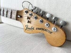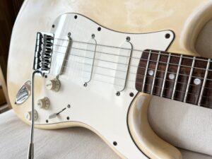 Blackmore’s Nightを含め、リッチーが現在も使用しているストラトは1977年製。今現在(2025年)の詳しい仕様は判りませんが、後期Rainbowあたりからの仕様として有名なのはスパーゼルのロックペグ、レースセンサーGOLDのPUなど。