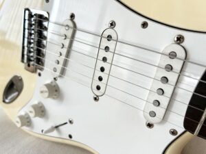 その他、ブラックだったPUカバーやノブ類をホワイトに変えて、ブリッジやトレモロブロックはオリジナル品ですがPUはスペシャルな物に!