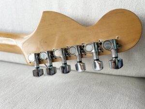 例によってペグはMADE IN “W” GERMANYのM6 miniダブルリグ、センターPUにはVelvet Hammerのカバーだけ付けています(面倒なので配線はいじっていません^_^;)♪