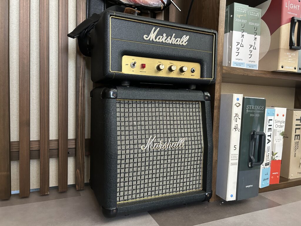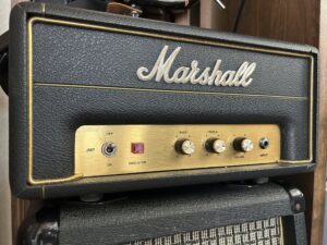 Marshall 50周年企画のなかで発売されたJMP-1H。”1959”へのオマージュ、1.0Wと0.1Wの切り替えが出来て、自宅で1959サウンドを~というヤツです。